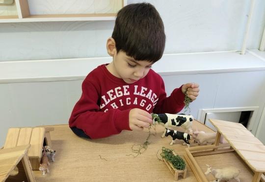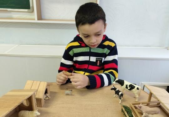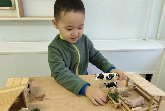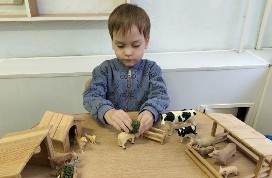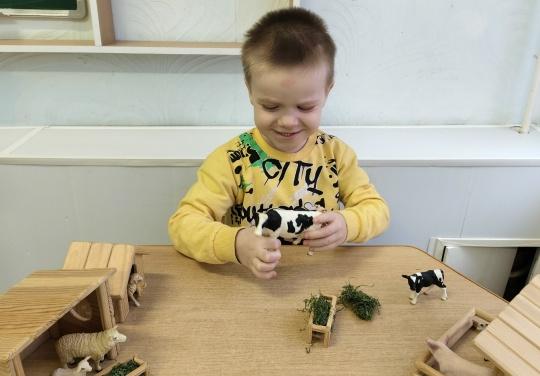 Поэтому накануне праздника мы с ребятами 2 группы познакомились с домашними животными и их детёнышами, помогли каждому малышу отыскать свою маму на ферме, а также угостили их "сочной" травой